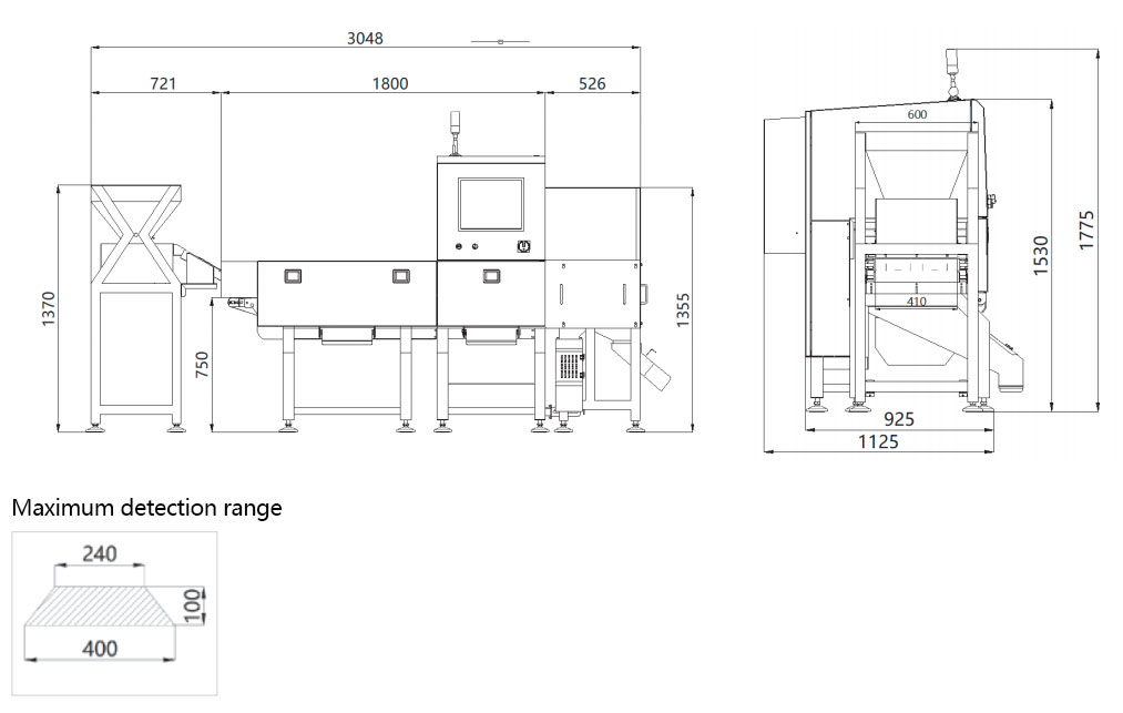 Remarks: The size of the detectable foreign matter is related to the material composition, packaging material, thickness and other parameters in the product. Please refer to the actual product test results.