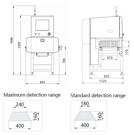 Remarks: The size of the detectable foreign matter is related to the material composition, packaging material, thickness and other parameters in the product. Please refer to the actual product test results.