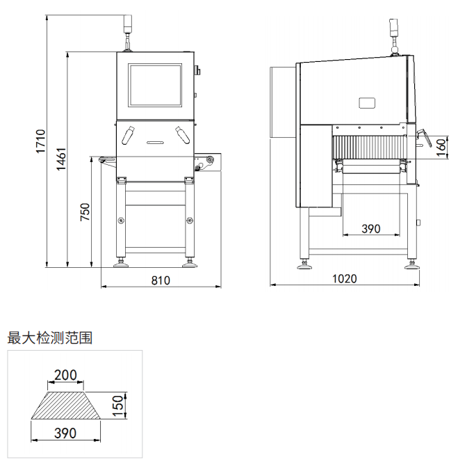 寬度≤390mm,高度≤150mm |