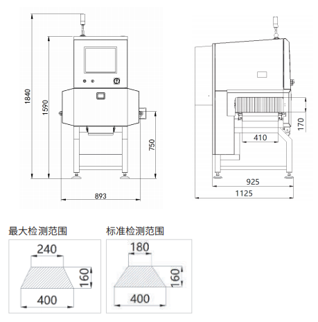 備注:可檢的異物尺寸與產(chǎn)品內(nèi)物質(zhì)成分、包裝材料、厚度大小等參數(shù)有關(guān)系,請(qǐng)以實(shí)際產(chǎn)品測試結(jié)果為準(zhǔn)。
